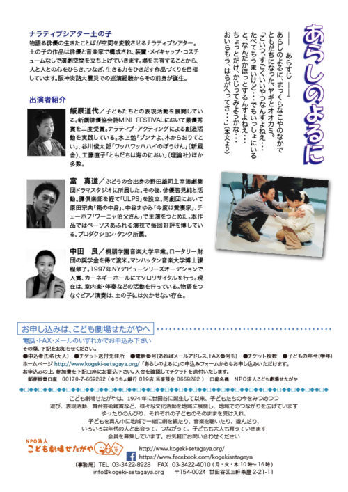 振込先 ◆ NPO法人こども劇場せたがや