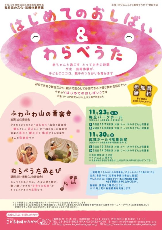 平成30年度世田谷区提案型協働事業「乳幼児の文化・芸術体験事業」