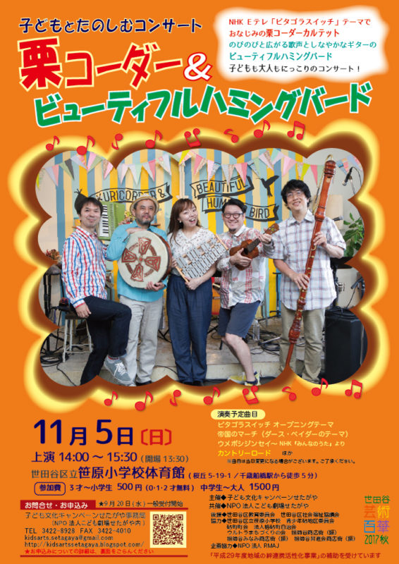 2017年11月5日(日) 会場 : 世田谷区立笹原小学校 14:00開演 (開場13:30)