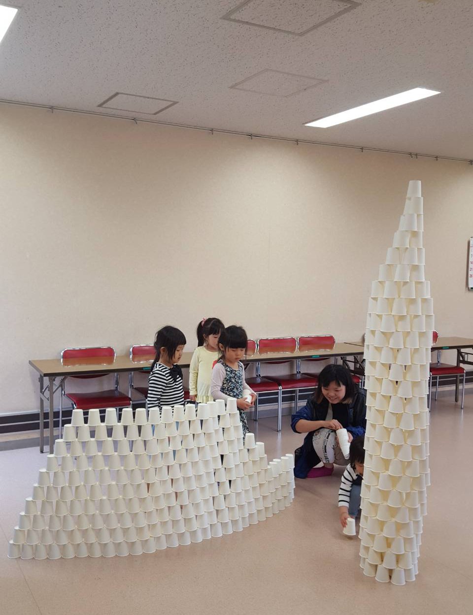 重ねたり積んだりさまざまですが、最後にお姉ちゃんたちに手伝ってもらい大作が出来上がりました。