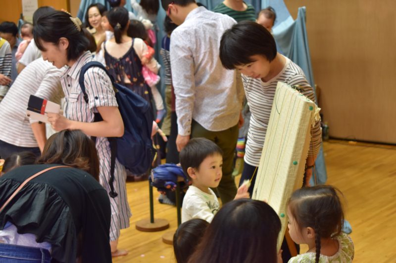 終演後の人形との交流の時間は、舞台に出てきたすべての人形たちとその装置を子どもたちが自由に動かしたり抱っこしたり触れ合う時間です。
