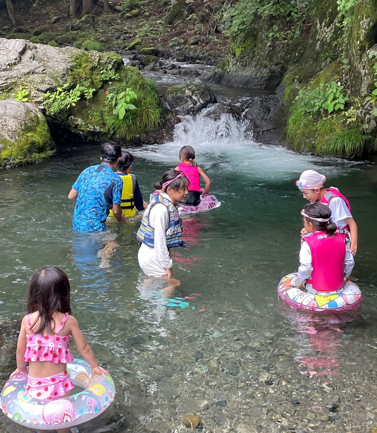 川では飛び込んだり魚獲りにチャレンジしたり、水鉄砲で遊んだり。