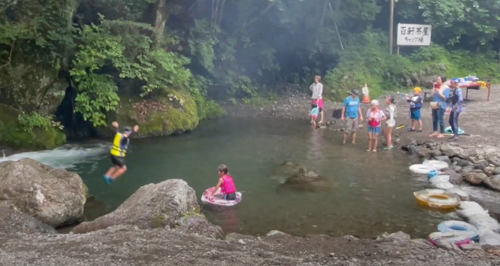 川では飛び込んだり魚獲りにチャレンジしたり、水鉄砲で遊んだり。