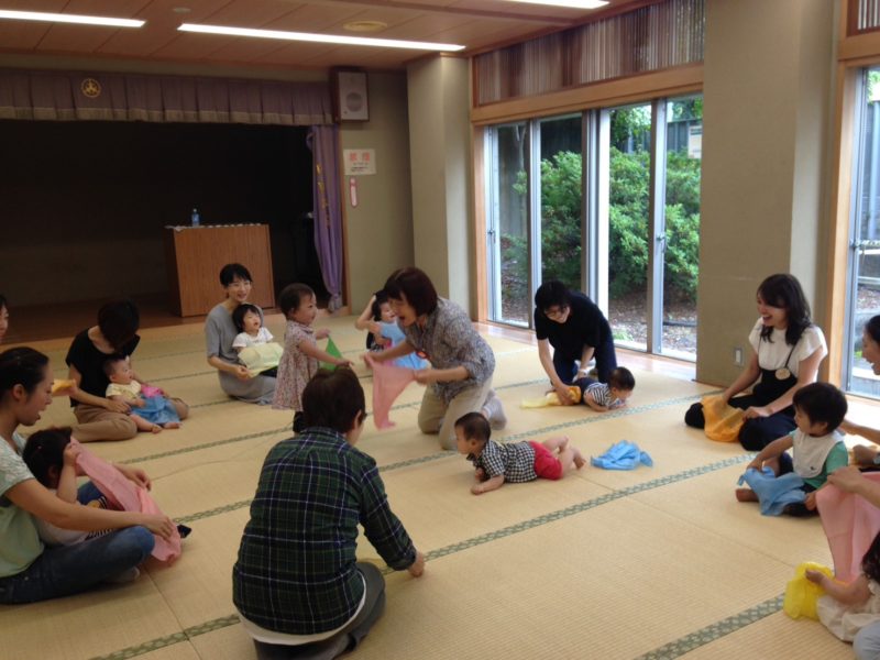 わらべうたもお母さんと赤ちゃんのスキンシップがたっぷりできて、笑顔が本当に楽しそうでスタッフも嬉しくなります。