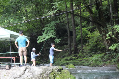 ちょっとした沢登りや魚釣りをして楽しみました。