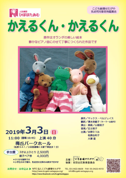 3月3日(日)11:00開演 梅丘パークホール あいにくの雨でしたが、会場は乳幼児の親子でいっぱいでした。 かえるくんシ […]