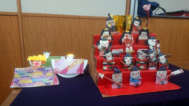 お雛様を作って、飾って、ひな祭りの歌をお母さんたち皆で歌いました。