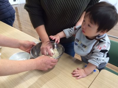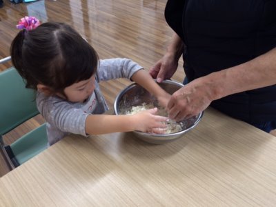 “わらべうた”と“きなこだんご”&“きなこマカロニ”づくりでした。