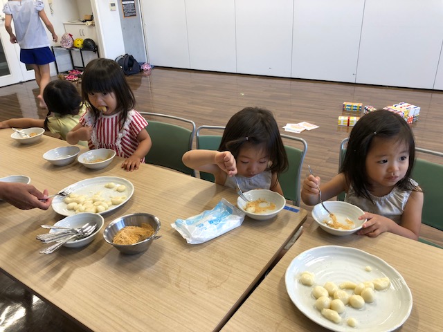 そして、“きなこだんご”と、“きなこマカロニ”を作って食べました。