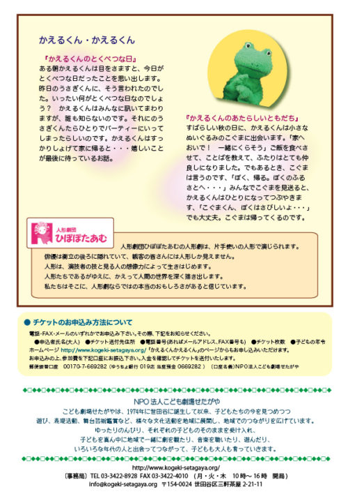 郵便振替口座 00170-7-669282 振込先◆NPO法人こども劇場せたがや