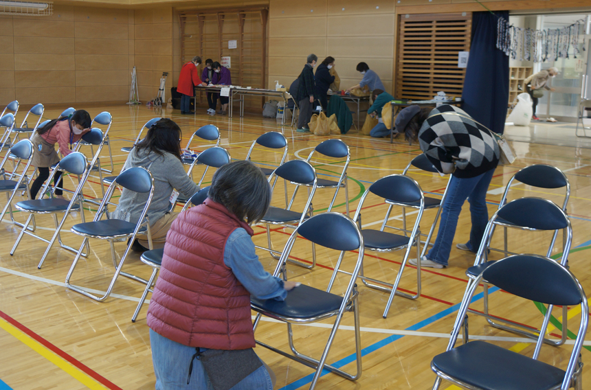 前日の空模様とは一転。秋晴れとなり、お日様の差し込む体育館も寒くなく、1回目は123人、2回目は116人と、とても多くの人にご参加頂き、ウイルス感染防止対策も万全に臨みました。