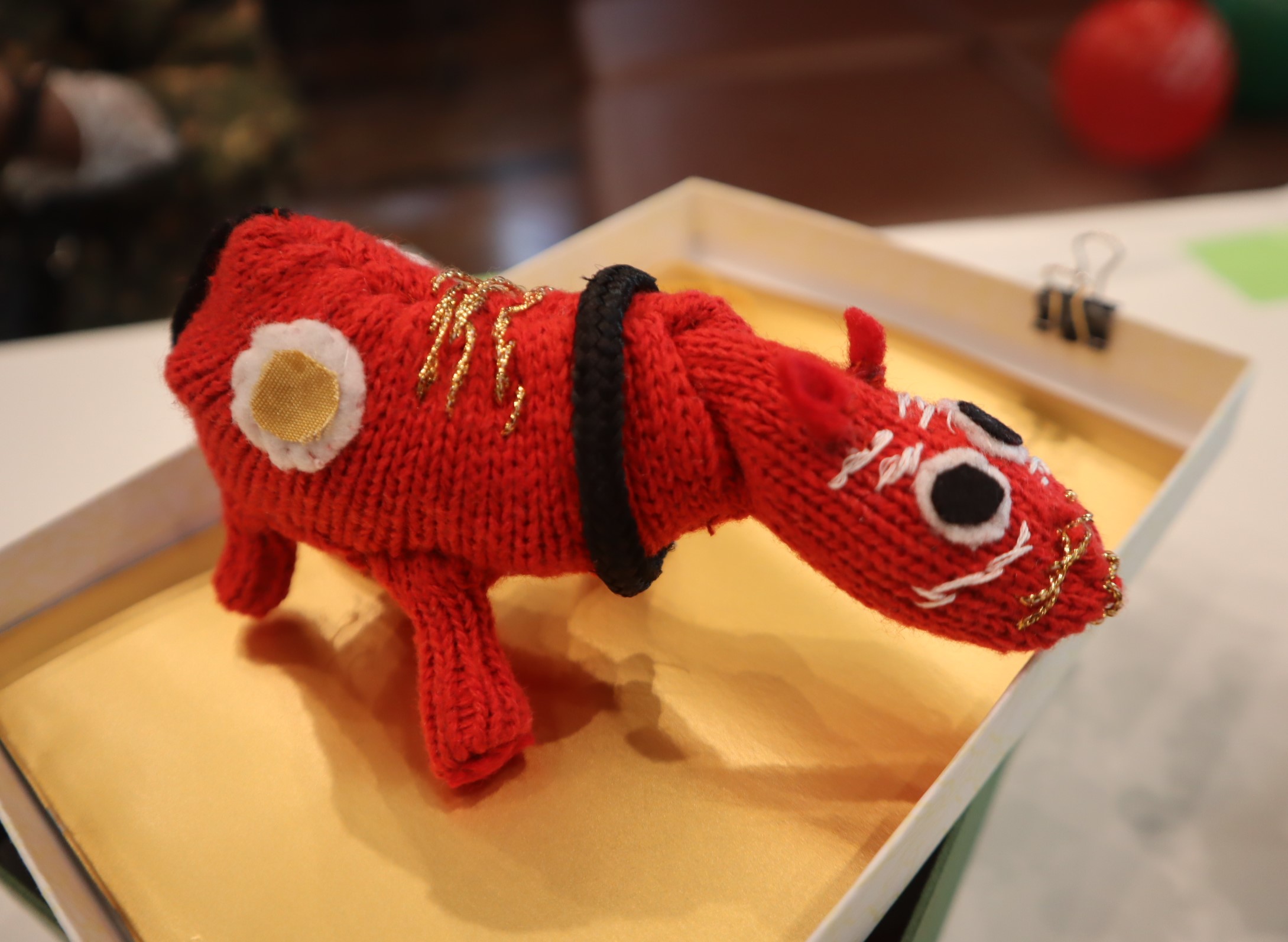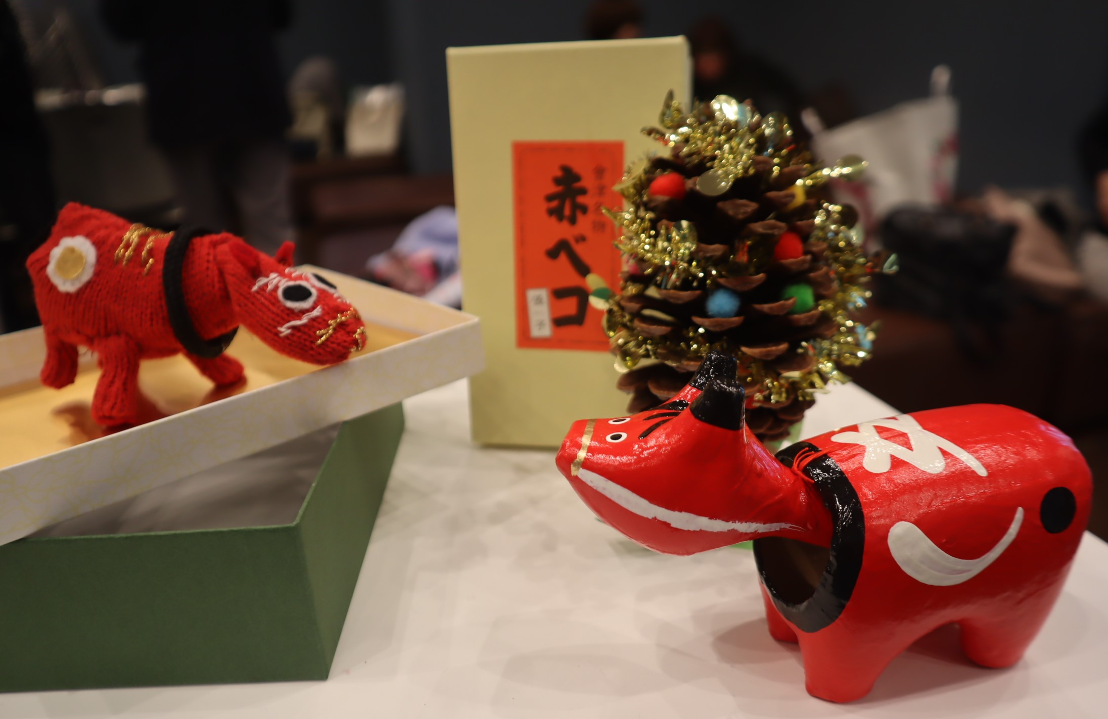 受付ロビーには編み物から折り紙から、いろんなあかべこがお客様をお出迎え。