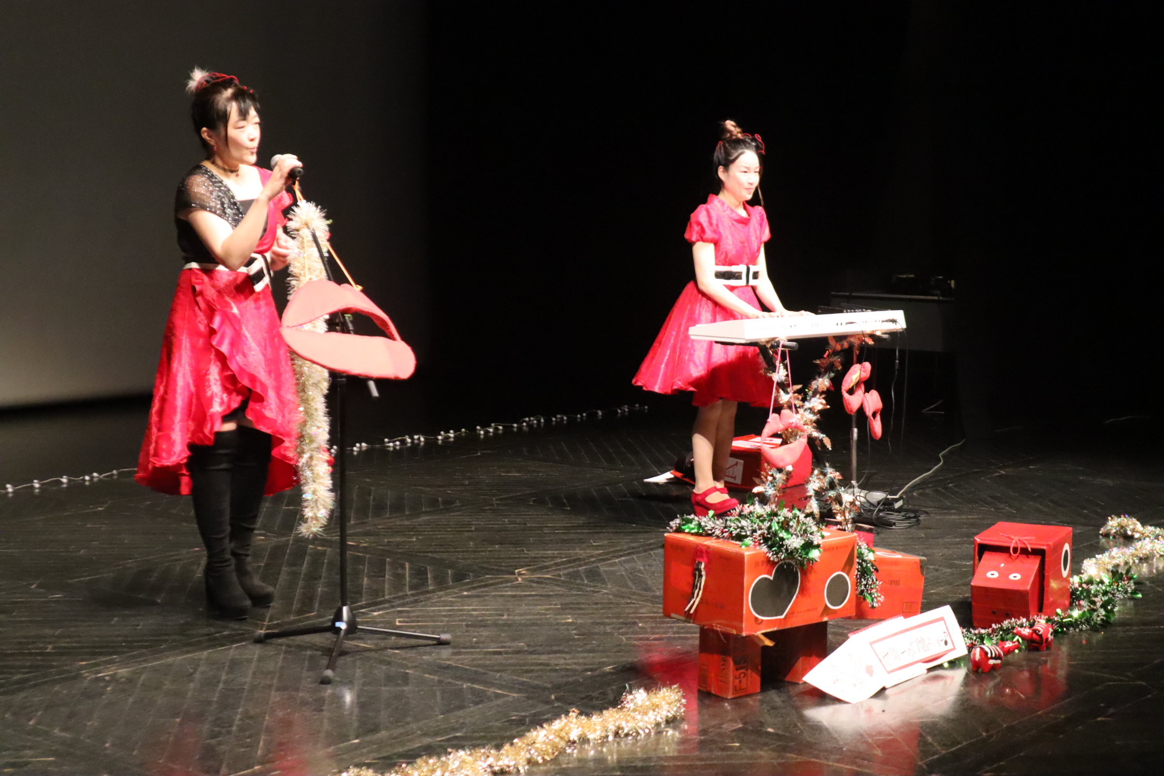 口笛奏者の高木満理子「まりりん」とキーボード奏者の細川佳那依「かなぴー」のユニット「レッド・べコーズ」が、満を持してこども劇場せたがやに登場!