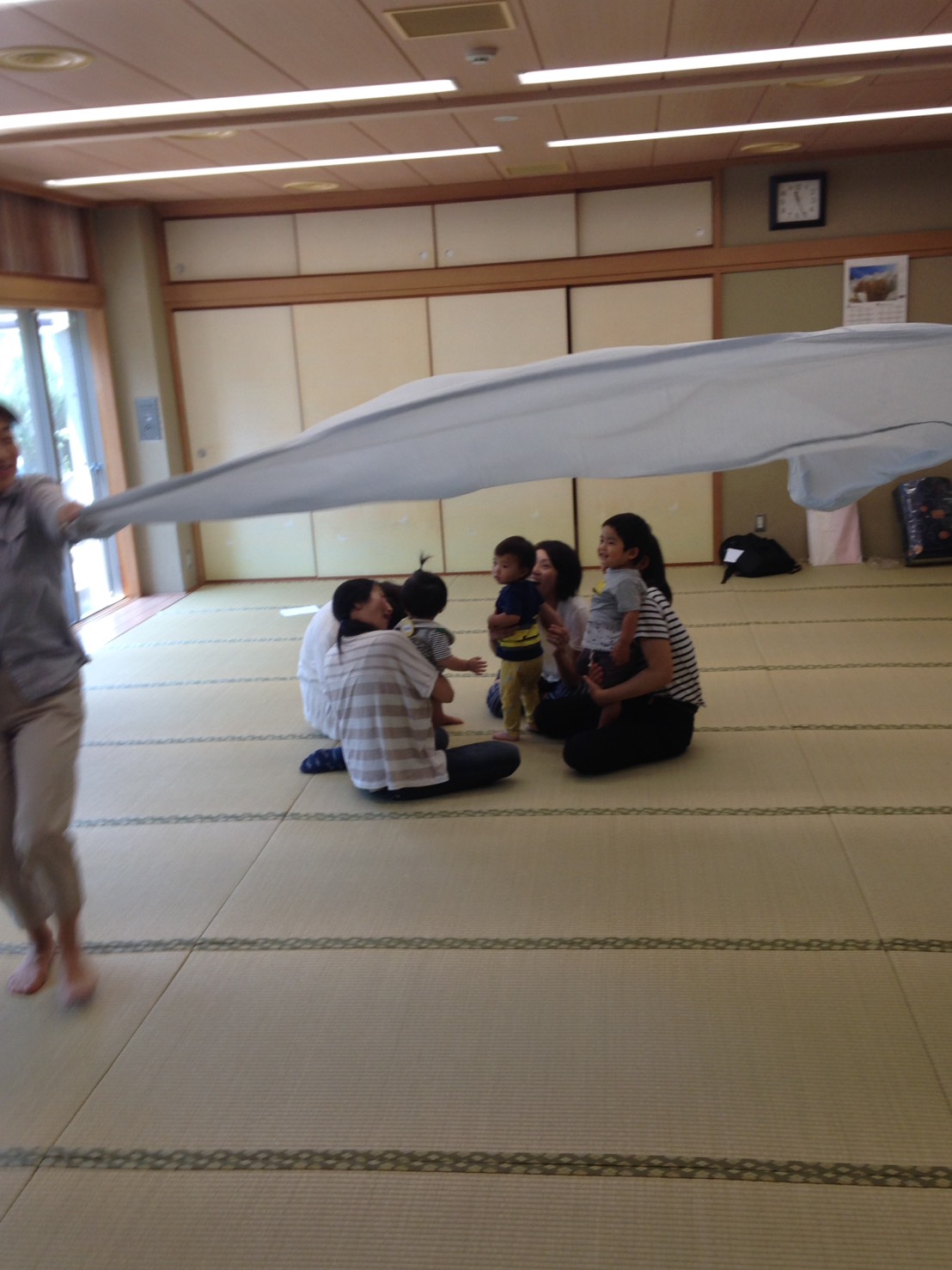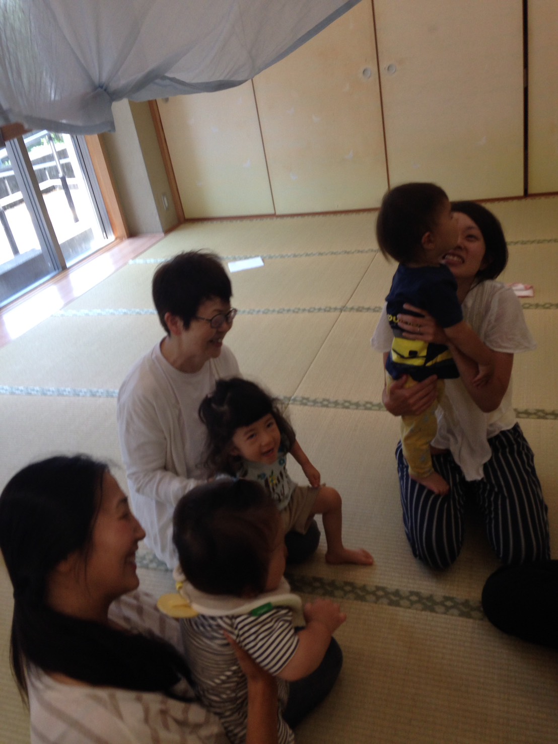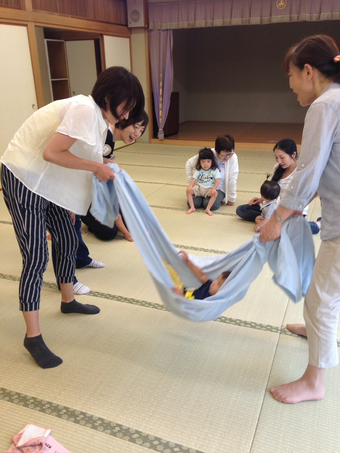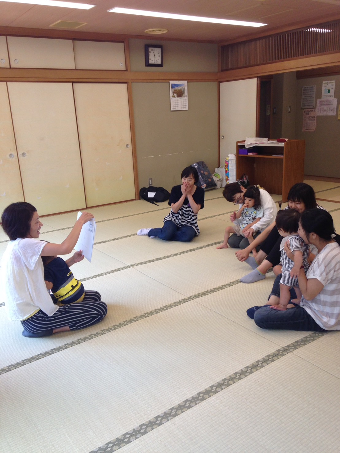 いつものようにわらべうたでお母さんと赤ちゃんが自然にスキンシップを楽しんでいるようでした。