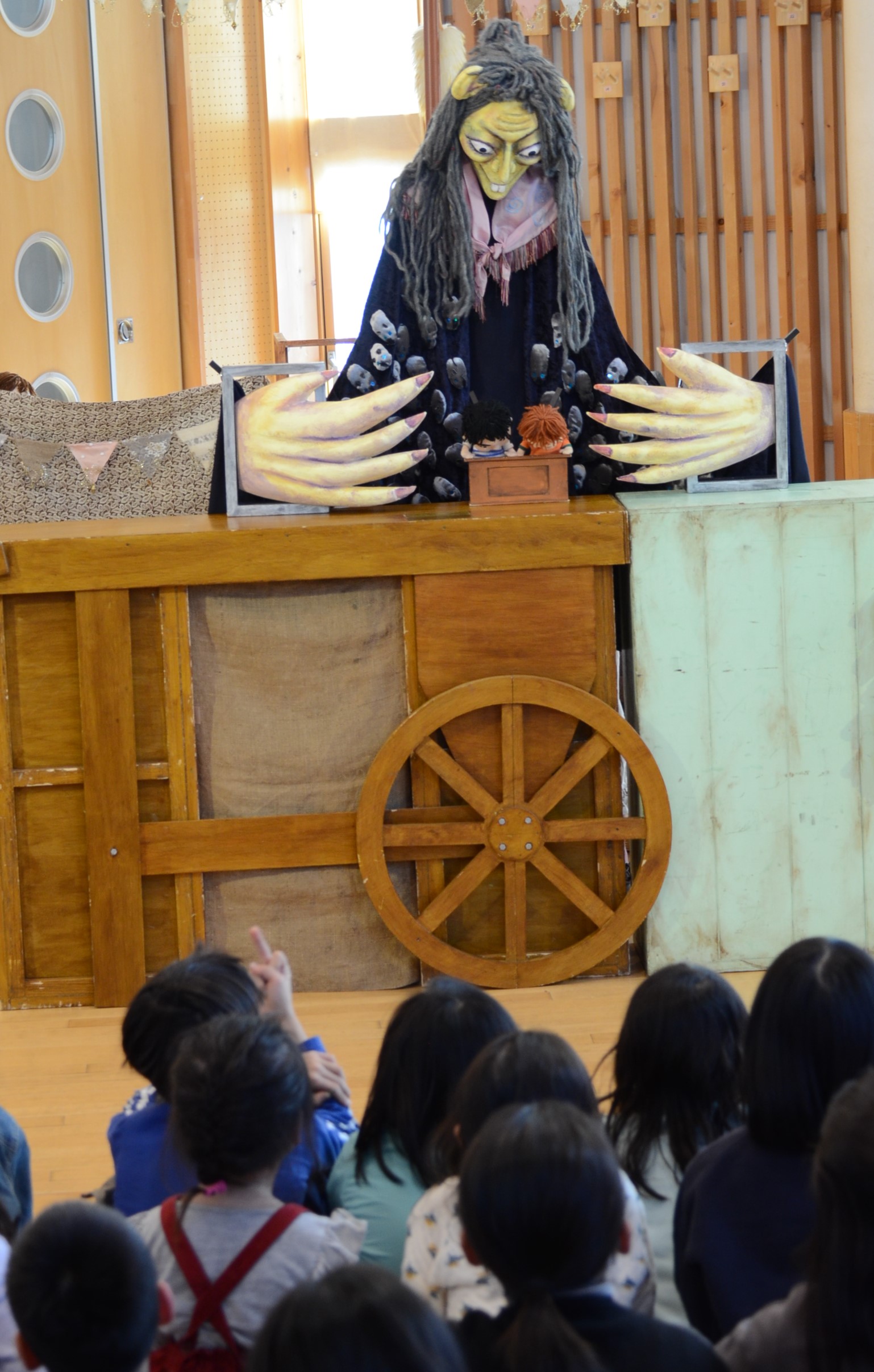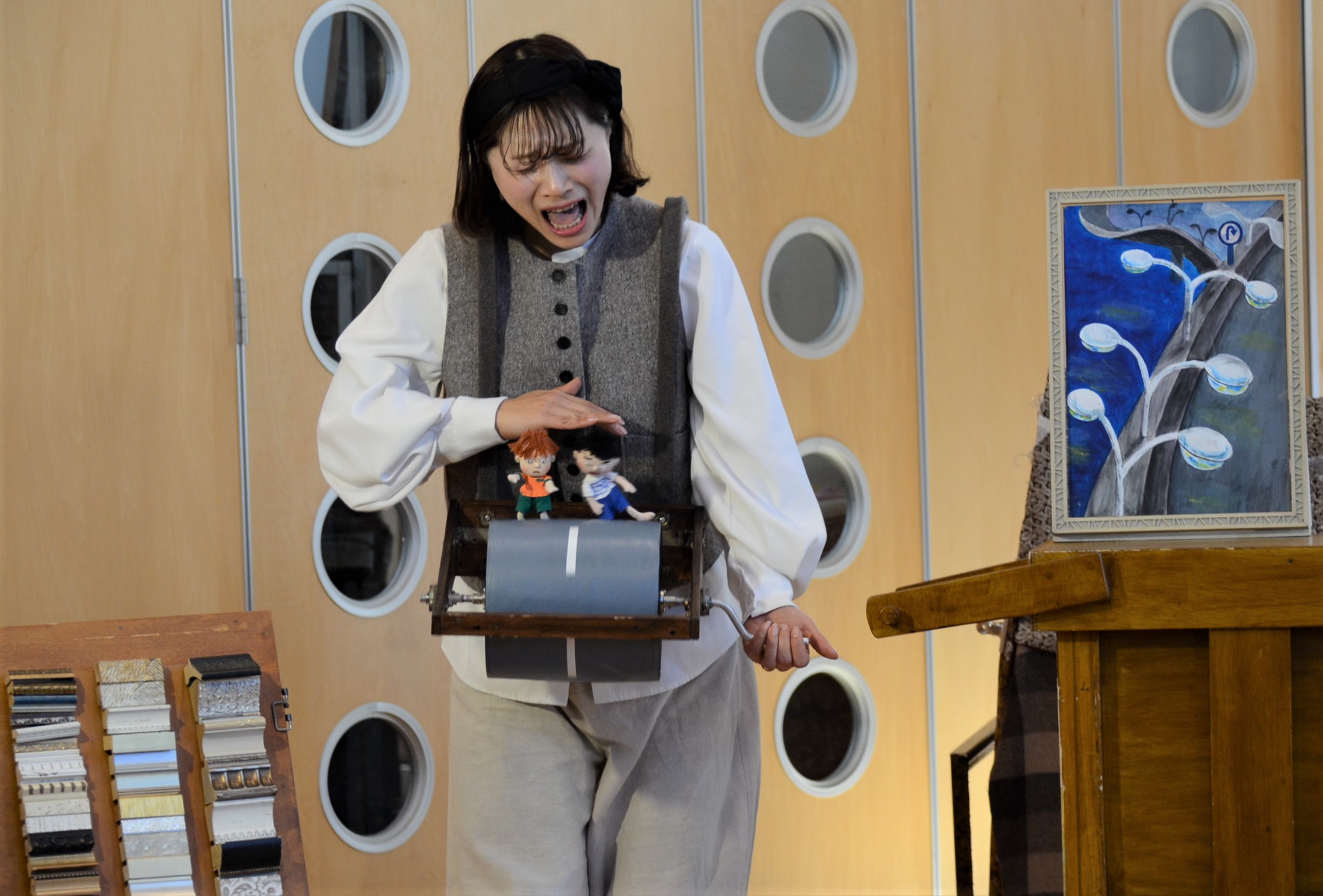 かわいい園児から怖しいねずみ婆さんまで、ひとりで何役も声色を変えて演じ息をつく間もありません。ひとりで演じているとは思えない演出や工夫に驚かされっぱなしです。