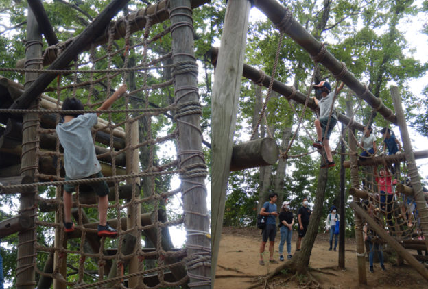 キャンプが日帰りだ ったので、高学年は連日企画とし 、 デイキャンプ翌日、電車で つくし野 へ向かいました。アスレチックはとても混んでいましたが、早めにお昼 を食べてたくさん遊びました。アスレチックでやった鬼ごっこが 楽しかったようです。