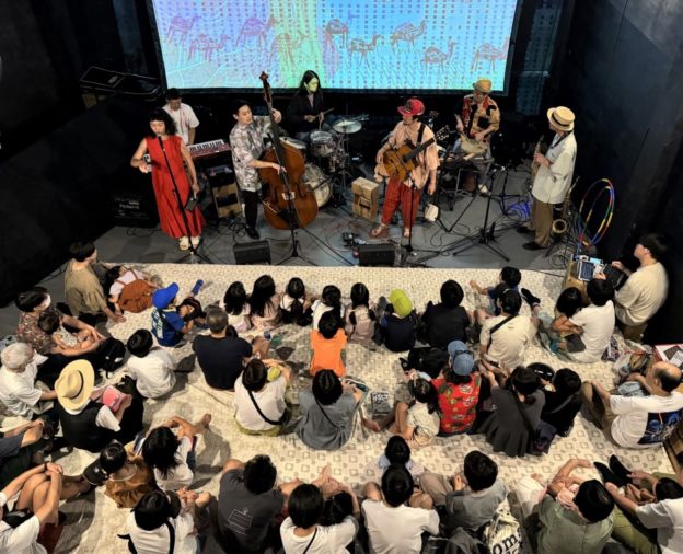 「ゼロから始める民族音楽」がコンセプトの馬喰町バンドは、ギター、ベース、ボーカル、キーボード、ドラム、パーカッション、サックスの7人編成です。