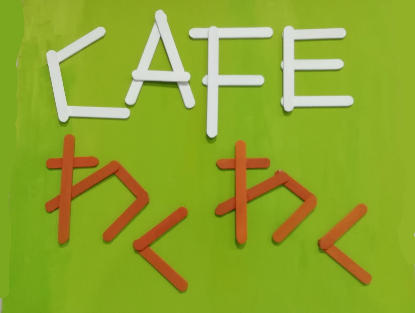 テントにメッシュの幕を張り、色とりどりの折り紙のチューリップ、鳥、小人などを飾り、とっても可愛い会場にしました。
