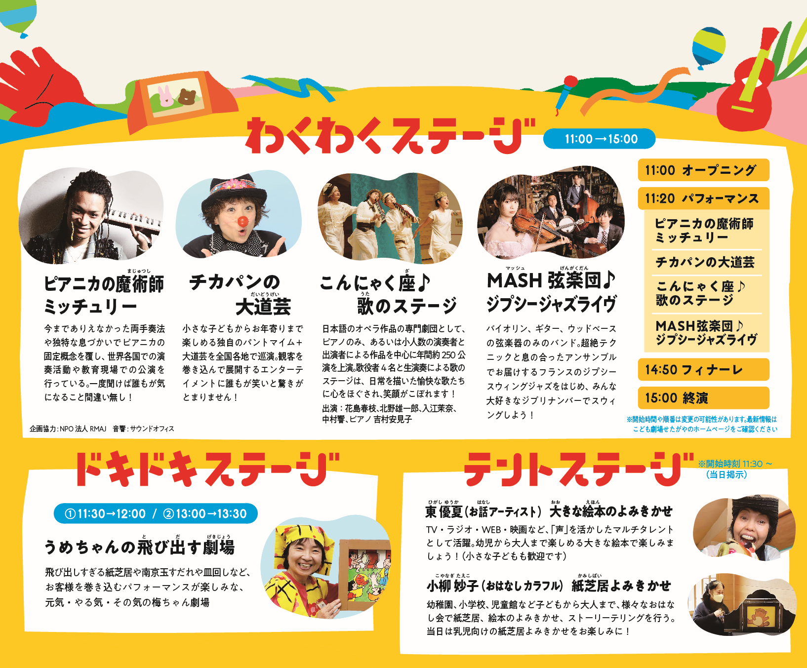 2000人を越える来場者が、わくわくステージ、ドキドキステジージ、テントステージと3つの特徴のあるステージを自由に楽しむことができる贅沢な時間になり、わたしたちが取り組む3つの地域課題である「子育ての孤立化解消」「子どもの体験の格差解消」「地域の関係性強化」にとっても大きな一歩となりました。