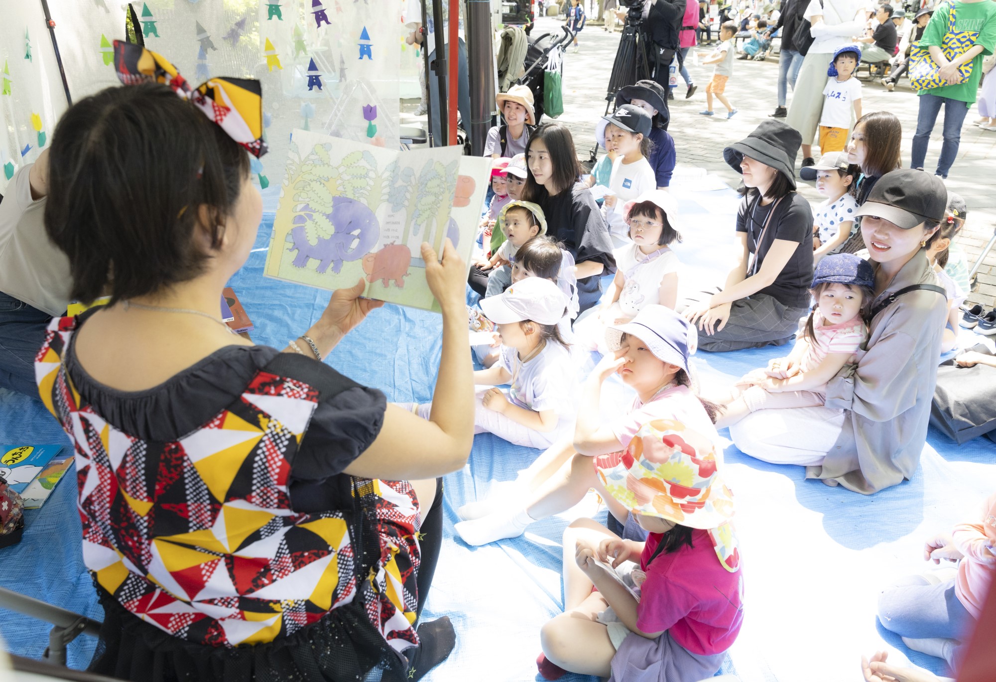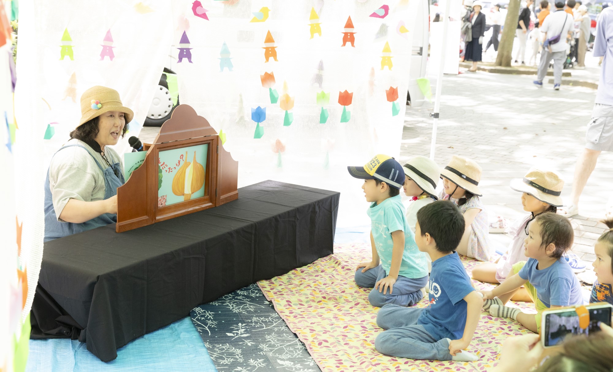 紙芝居テントには、お膝の上の赤ちゃんから後ろの方で見ている大人まで、たくさんの方に立ち寄っていただけました。いろんなお話があったでしょ! また遊びに来てください!