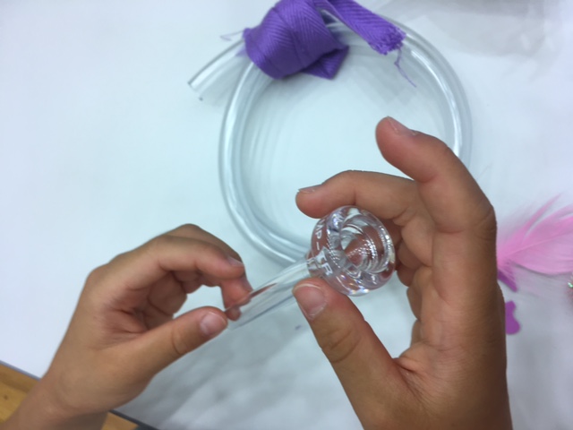 結び終わったら、一方には、ロートを取り付け、もう一方には、マウスを付けます。