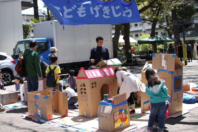 早朝からパパたちが集まって協力して完成した「ダンボール迷路」は、今年も大人気のコーナーになりました。今年はわくわくシアター開催20周年を記念して、かわいくカラフルに変身!アート女子チームの活躍がありました。