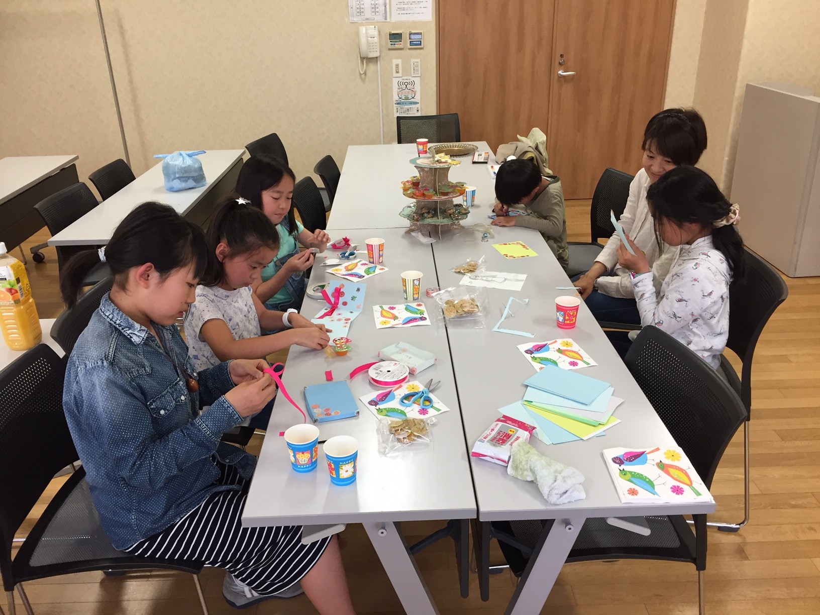 高学年になればなるほど、習い事や学校の行事も重なり、みんなで集まれるのは貴重な機会になります。お菓子を食べながら、忙しかったけど楽しかったわくわくの日をふりかえりました。 ちょうど母の日だったので、母の日カードも作りました。楽しかったですね!