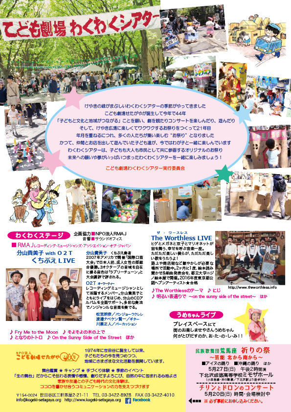【問い合わせ】 こども劇場せたがや事務局 電話03-3422-8928(月火木10~16時開局)