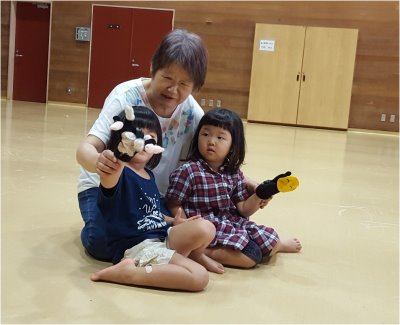 観たあとで、「やってみたい」と女の子二人で手袋人形をやってくれました。